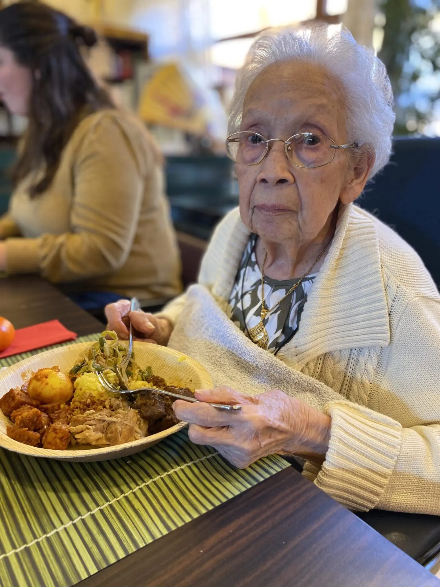 “Gele rijst is heel speciaal, dat eet je alleen met feestjes”, vertelt mevrouw Wijler, bewoner van Rumah Kita. In het restaurant van Rumah Kita krijgen alle bewoners, medewerkers en gasten vandaag, 1 maart, een speciale maaltijd genaamd Nasi Kuning; “gele rijst met tempeh, ei, kip, oerap oerap en smoorvlees”, zo legt mevrouw uit. Haar tafelgenoot mevrouw Valkenburg valt haar bij: “het is een soort rendang”. Op 1 maart vierden we dat Dennenrust 65 jaar geleden werd opgericht en dat Rumah Kita 15 jaar bestaat.