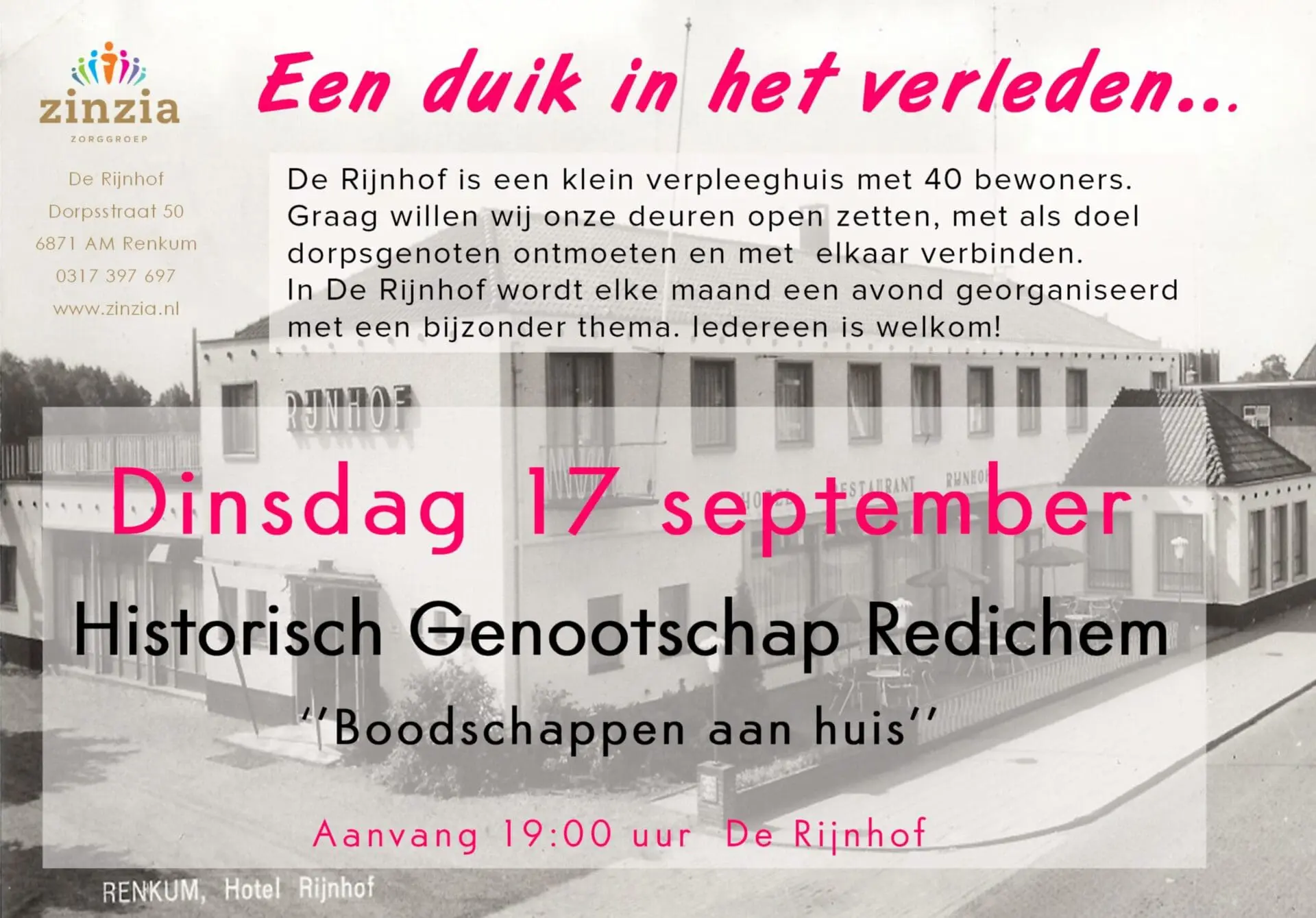 De Rijnhof is een klein verpleeghuis met 40 bewoners. Graag willen wij onze deuren open zetten, met als doel dorpsgenoten ontmoeten en met elkaar verbinden. In De Rijnhof wordt elke maand een avond georganiseerd met een bijzonder thema. Iedereen is welkom!