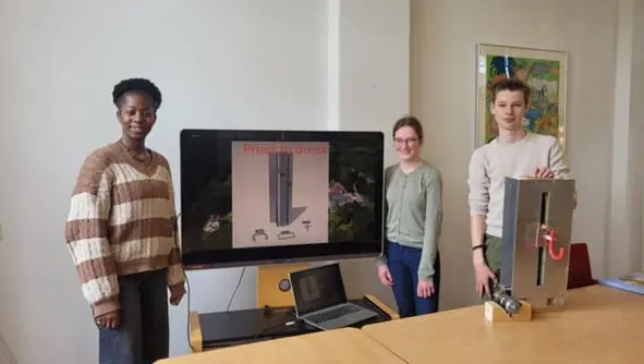 Maaike: “Ons profielwerkstuk, wat bij ons op school de meesterproef wordt genoemd, voerden we uit voor het vak Onderzoek en Ontwerpen. Het was de bedoeling om een product op te leveren. We kwamen er al snel op uit dat we graag een medisch hulpmiddel wilden maken. Dabria en ik zijn geïnteresseerd in biologie en gezondheidszorg, Tommy wil graag productontwerper worden. Een medisch hulpmiddel paste dus mooi bij onze gezamenlijke interesses.”