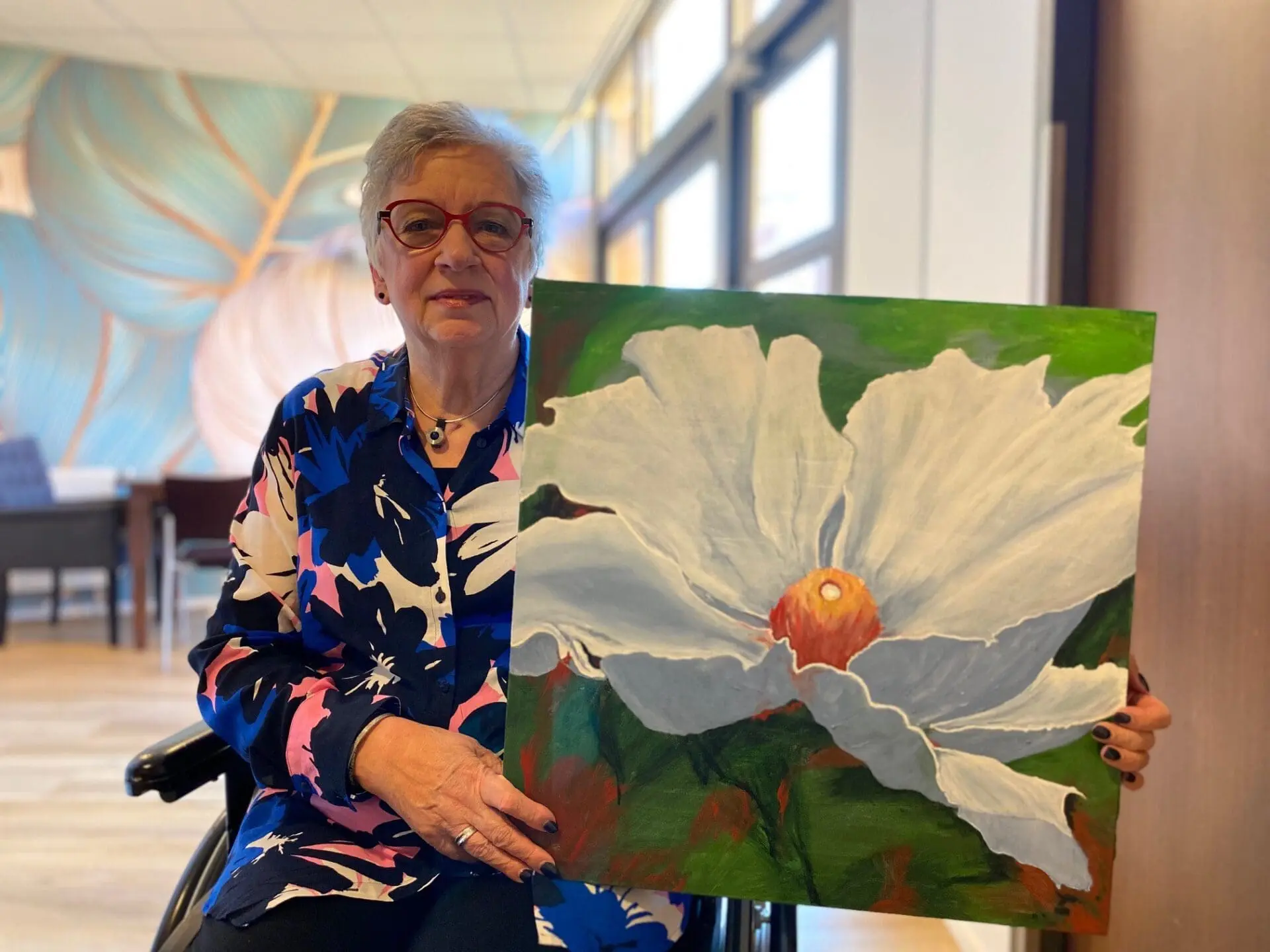 “Als ik later meer tijd heb ga ik schilderen”, dacht Ellen van Manen (73 jaar) altijd. Het ‘later’ kwam eerder dan gedacht. Een auto-imuumziekte liet de Lentse 21 jaar geleden per toeval kennismaken met de schilderkunst. Het was een vorm van therapie vanuit de St. Maartenskliniek. “Ik kon niet eens een kwast vasthouden, met klittenband werd deze aan mijn hand vastgemaakt”, blikt Ellen terug op deze donkere periode uit haar leven. Nu exposeert de schilderes met haar bloemen in hospice De Zijdevlinder in Wageningen en hospice De Goudvlinder in Bemmel.