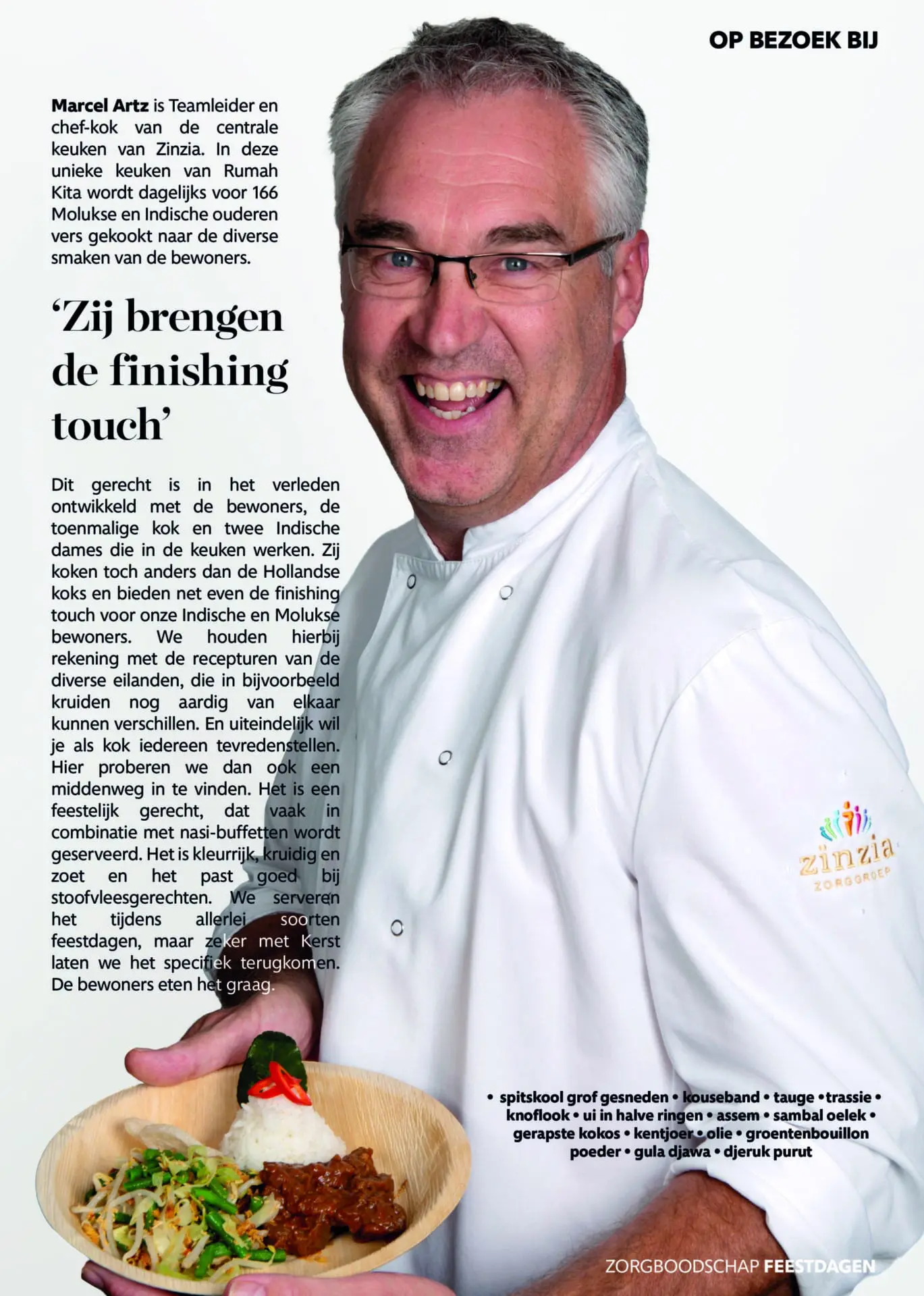 Een lekker kerstdiner op tafel zetten is nog niet zo gemakkelijk. Een kok draait daar echter zijn hand niet voor om. Zo ook Marcel Artz, teamleider en chef-kok van de centrale keuken van Zinzia.