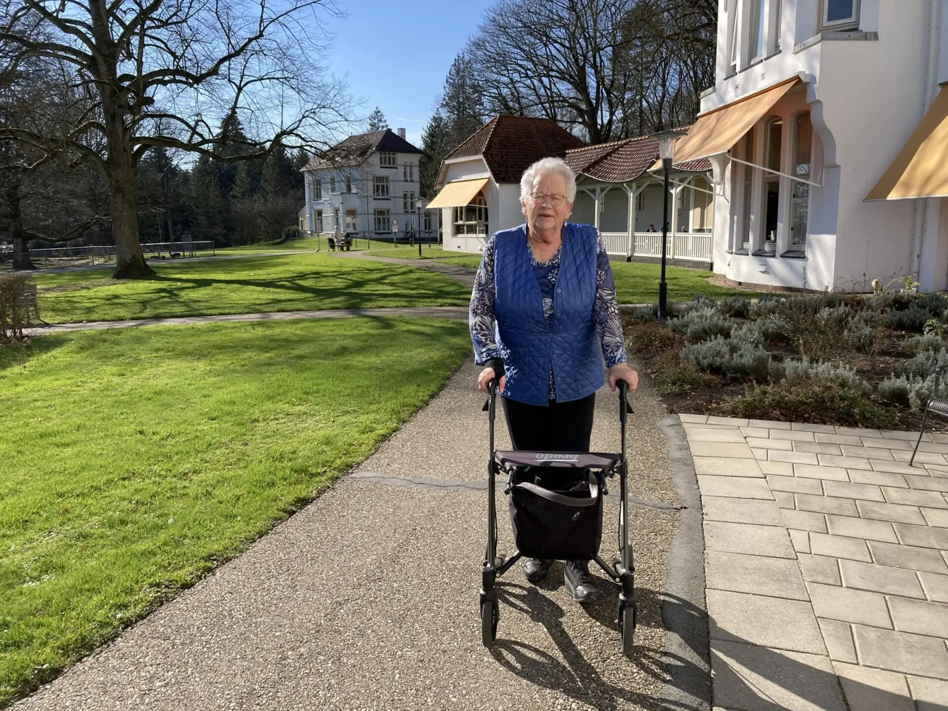 We gaan samen een wandelingetje maken, het is heerlijk weer. Op het terras zorgt collega Karin voor een lekkere kop koffie. We praten met mevrouw Rutjes. Zij is een van de cliënten van de Dagbehandeling bij Oranje Nassau’s Oord.
