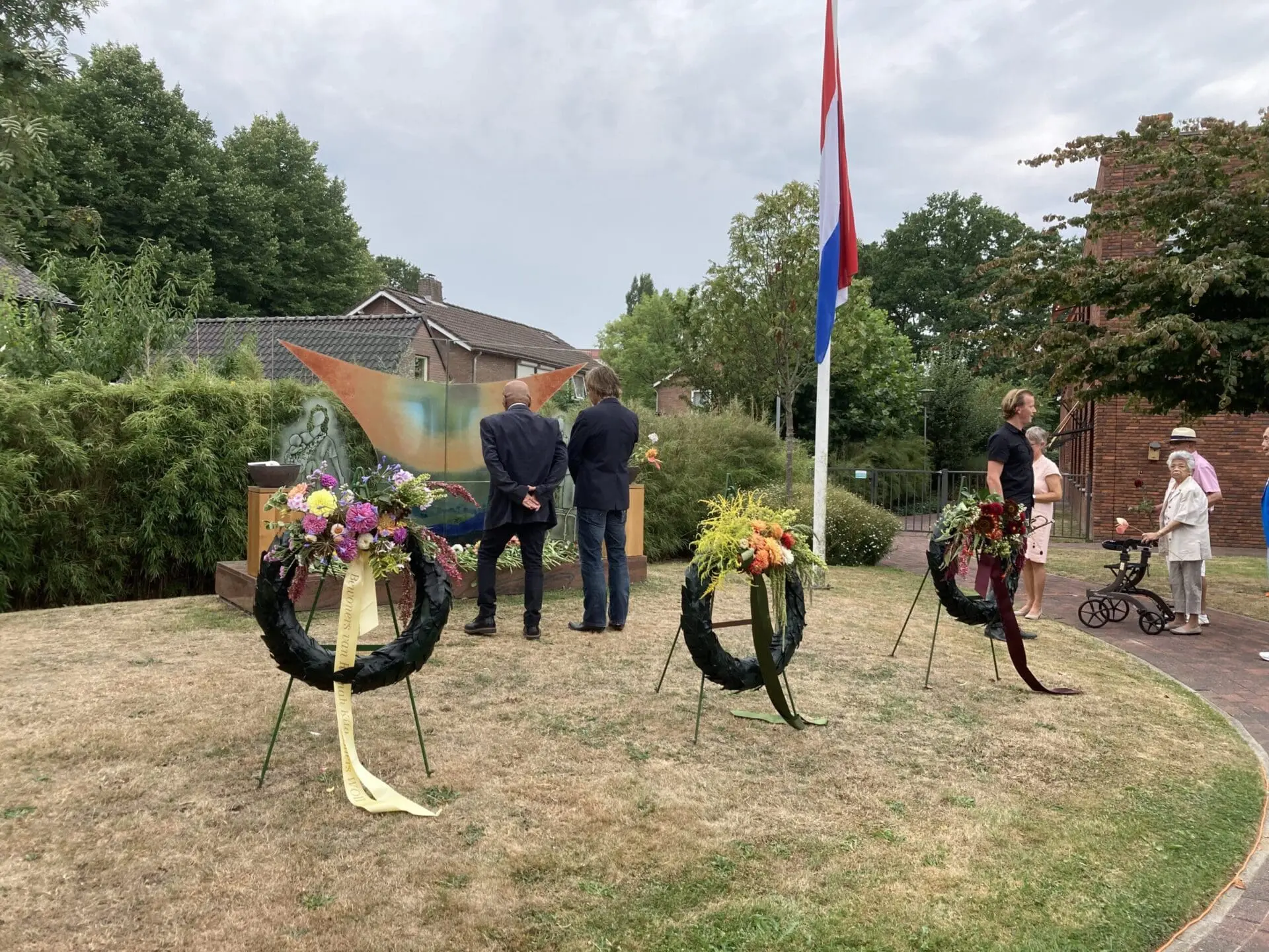 Kranslegging en defilé langs het monument met mogelijkheid voor bewoners en bezoekers om bloemen te leggen.