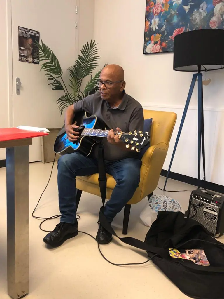 “Sinds ik hier gitaar mag spelen voel ik mij weer goed”, vertelt Johnny Pattiwaellapia (69 jaar). Johnny woont sinds 2 jaar bij Rumah Kita en speelt elke dinsdagmiddag gitaar voor de bewoners van Grunsfoort/Laankamp op Oranje Nassau’s Oord.