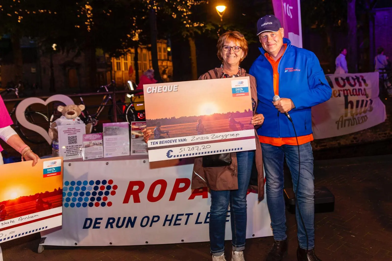 Miriam Schats, clustermanager van de hospices van Zinzia: “Met het opgebrachte geld kunnen we mooie doelen realiseren. We hebben een hoop wensen waaronder een overkapping, luxe sta-opstoelen en massagestoelen. We kijken wat we hiervan kunnen doen. Daar hebben jullie voor gelopen! We zijn jullie heel erg dankbaar.”