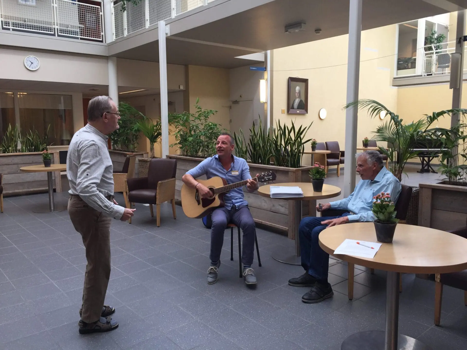 Na het interview gaan we met Jeroen naar de bewoners om te zingen en gitaar te spelen. De heren Krotwaar en Van de Mheen genieten zichtbaar van de muziek en de aandacht. We delen de opname graag met je. KLIK HIER voor de video.