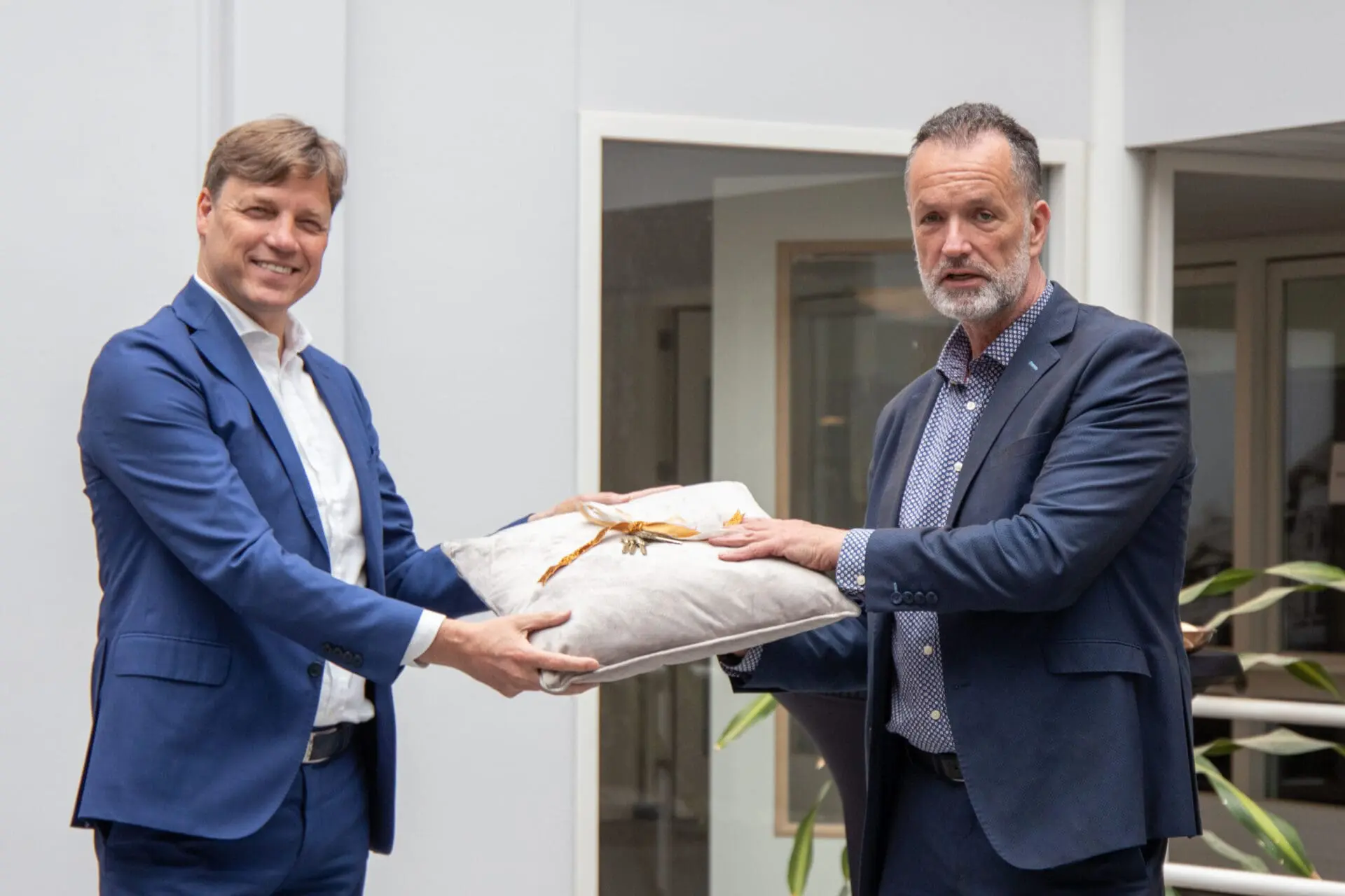 Maandag 17 mei kreeg Ton Poos, bestuurder Vilente de sleutel van de Emmapleinen uit handen van bestuurder Hans Somer. In goed overleg en samenwerking met Vilente heeft Zinzia afgesproken dat zij tijdelijk vier woningen van de Emmapleinen in gebruik gaan nemen. In verband met de sloop en vervolgens de nieuwbouw van hun verpleeghuis Overdal in Oosterbeek, waren zij op zoek naar een tijdelijk verblijf voor hun bewoners. “Geweldig dat de bewoners en medewerkers van Overdal tijdens de nieuwbouw in een van de onlangs gerenoveerde locaties van Oranje Nassau’s Oord van Zinzia Zorggroep kunnen wonen en werken”, vindt Ton Poos.