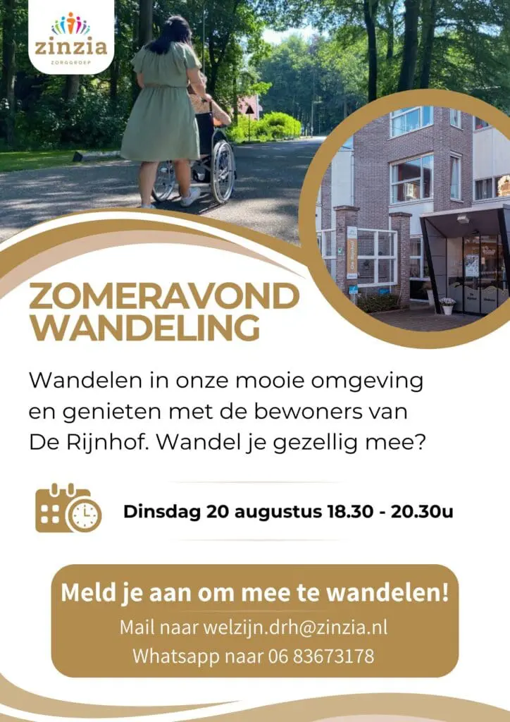 Wat is er fijner dan wandelen in de mooie omgeving van Renkum en tegelijkertijd genieten met de bewoners van De Rijnhof? Wandel jij ook gezellig mee op een heerlijke zomeravond?