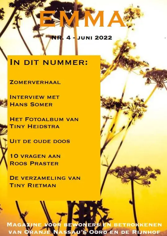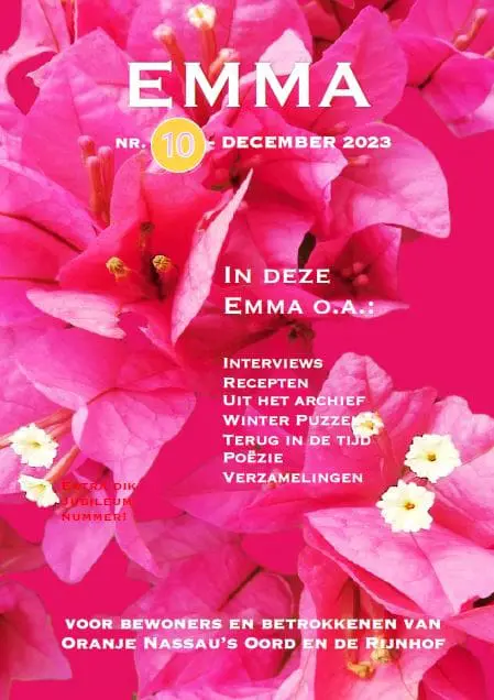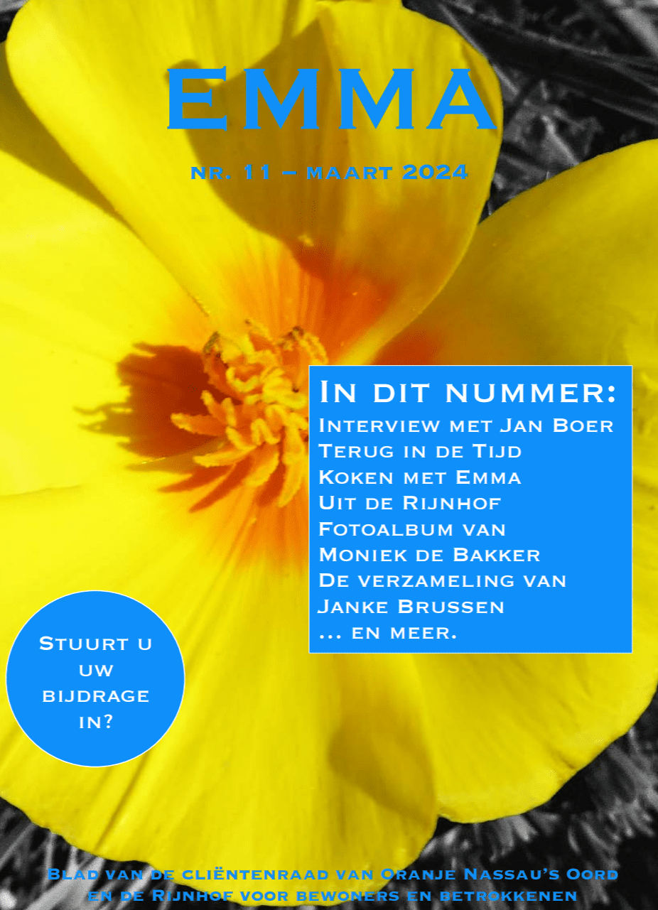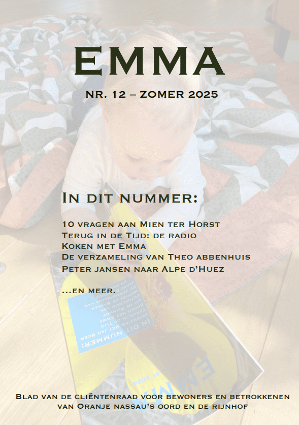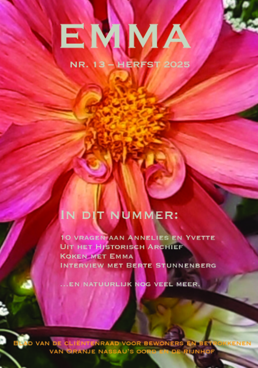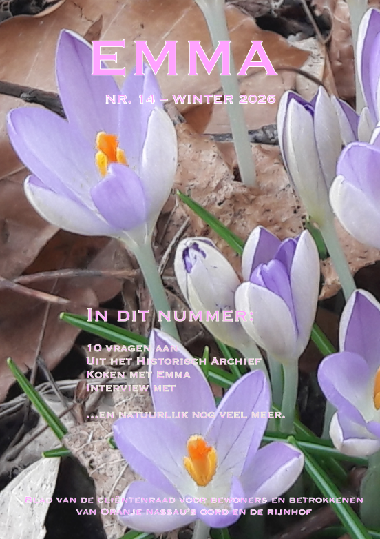 De Emma is het bewonersblad voor bewoners van Oranje Nassau’s Oord en De Rijnhof. Dit blad wordt gemaakt door de cliëntenraad van Oranje Nassau’s Oord en De Rijnhof.