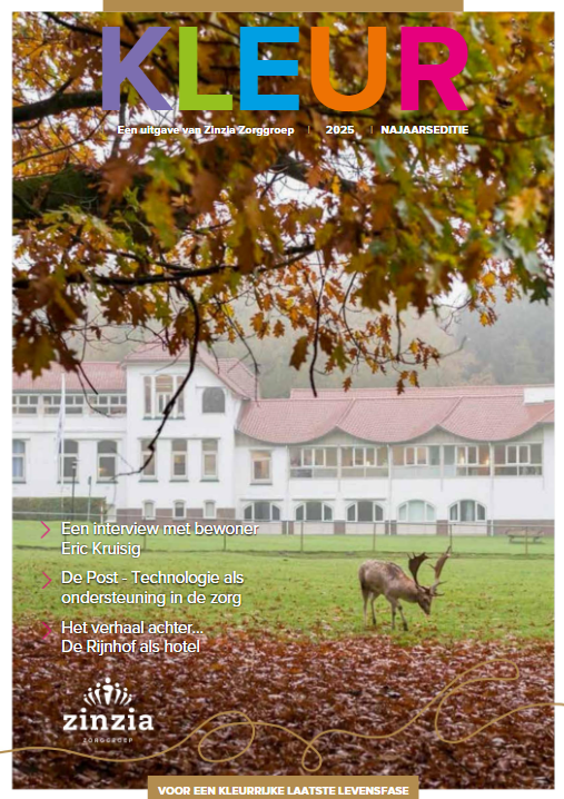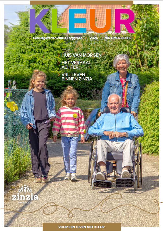 Sinds 2024 ontvangen de medewerkers, vrijwilligers en eerste contactpersonen van cliënten van Zinzia een tijdschrift. Niet zomaar een tijdschrift, maar het Zinzia tijdschrift KLEUR! Een kleurig tijdschrift dat verhalen vertelt en mensen verbindt. Vanaf 2025 verschijnt KLEUR twee keer per jaar.